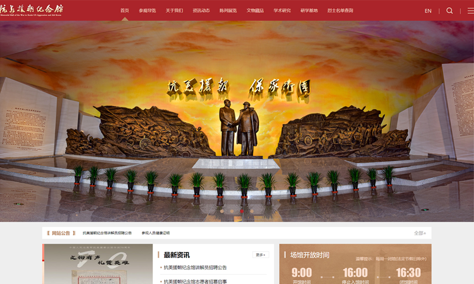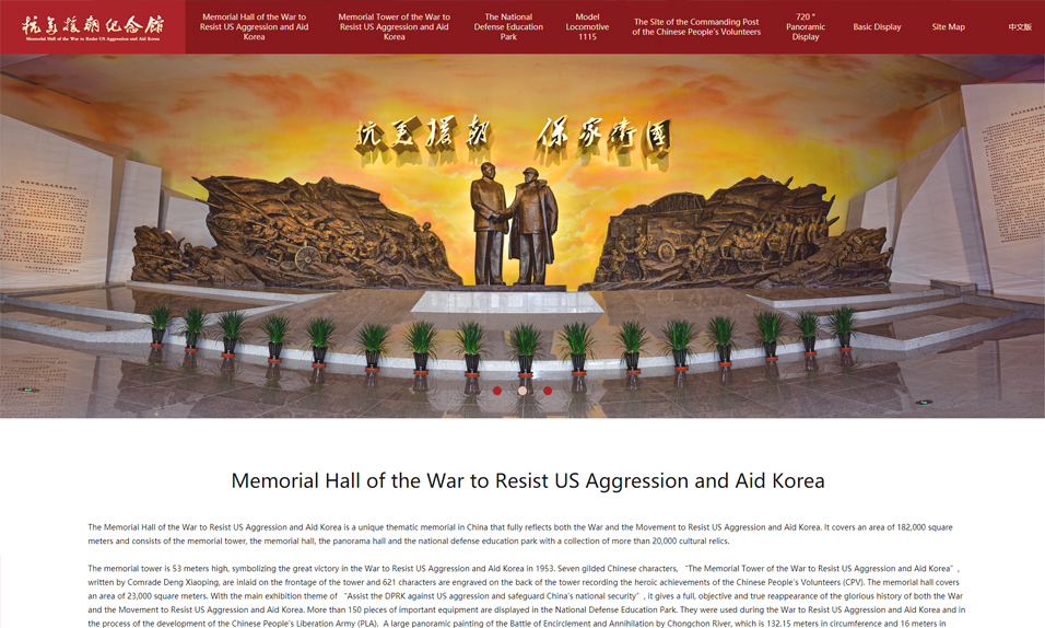 抗美援朝紀(jì)念館位于遼寧省丹東市鴨綠江畔的英華山上,與朝鮮民主主義人民共和國(guó)新義州市隔江相望,是全國(guó)唯一全面反映中國(guó)人民抗美援朝戰(zhàn)爭(zhēng)和抗美援朝運(yùn)動(dòng)歷史的專題紀(jì)念館。
