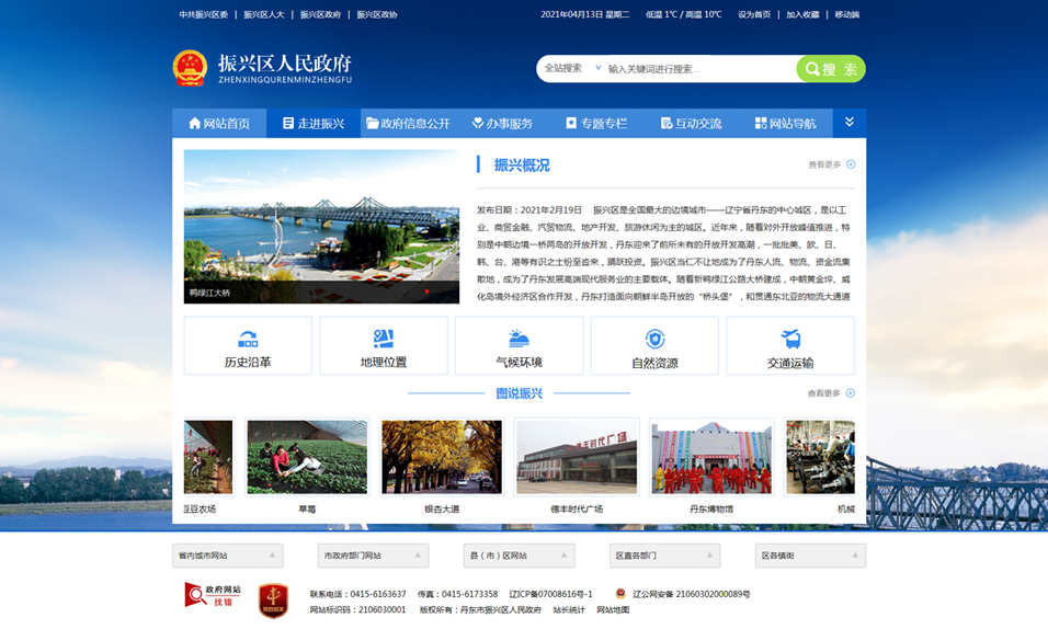 振興區(qū)是全國最大的邊境城市——遼寧省丹東的中心城區(qū),是以工業(yè)、商貿(mào)金融、汽貿(mào)物流、地產(chǎn)開發(fā)、旅游休閑為主的城區(qū)。近年來,隨著對(duì)外開放峰值推進(jìn),特別是中朝邊境一橋兩島的開放開發(fā),丹東迎來了前所未有的開放開發(fā)高潮,一批批美、歐、日、韓、臺(tái)、港等有識(shí)之士紛至沓來,踴躍投資。振興區(qū)當(dāng)仁不讓地成為了丹東人流、物流、資金流集散地,成為了丹東發(fā)展高端現(xiàn)代服務(wù)業(yè)的主要載體。隨著新鴨綠江公路大橋建成,中朝黃金坪、威化島境外經(jīng)濟(jì)區(qū)合作開發(fā),丹東打造面向朝鮮半島開放的“橋頭堡”,和貫通東北亞的物流大通道戰(zhàn)略的全面實(shí)施,振興區(qū)成為了遼寧對(duì)外開放新高地。